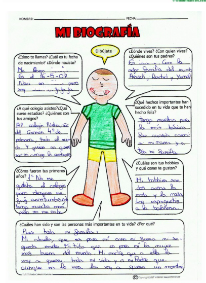 Después de rellenar esta ficha escribe el texto de la autobiografía en forma de redacción guiándote por el esquema.